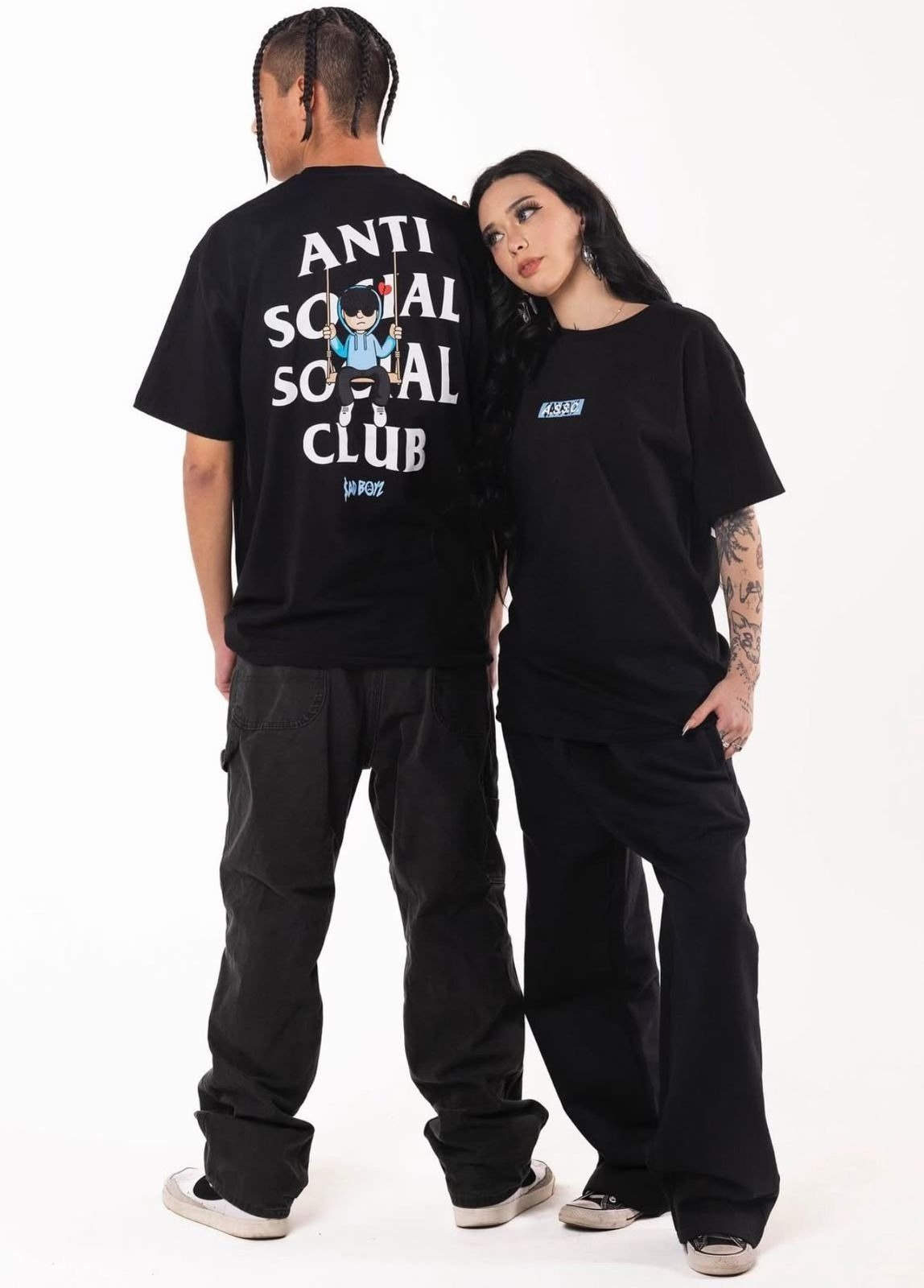 La ASSC x Sad Boyz Swing Tee es una camiseta streetwear nacida de la colaboración entre Anti Social Social Club y Sad Boyz, la marca del cantante mexicano Junior H. Con una estética oscura y minimalista, esta pieza refleja la identidad emocional y urbana de ambas marcas. Su diseño en color negro la convierte en una prenda versátil y representativa de esta colaboración especial, ideal para outfits streetwear con carácter.