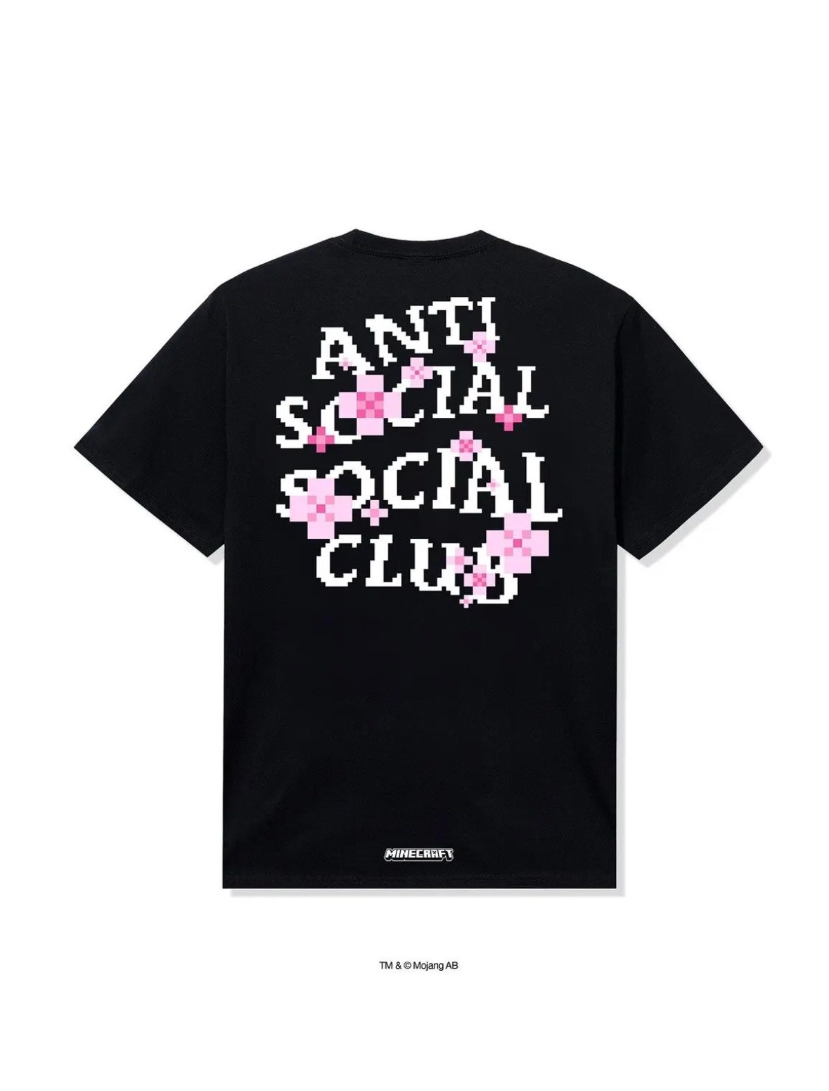La ASSC x Minecraft Cherry Blossom Tee es una playera streetwear que fusiona el estilo irreverente de Anti Social Social Club con la estética pixelada de Minecraft. Presenta el logo de ASSC en la espalda en versión pixel art, acompañado de flores de cerezo pixeladas, además del logo de Minecraft y el aviso de Mojang AB cerca del dobladillo. Una pieza llamativa y coleccionable de esta colaboración especial.