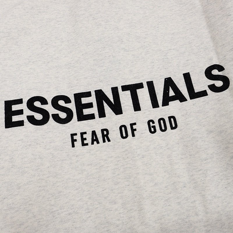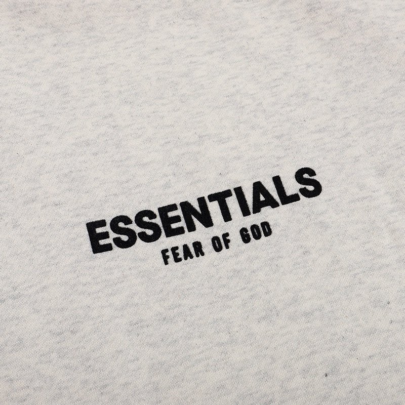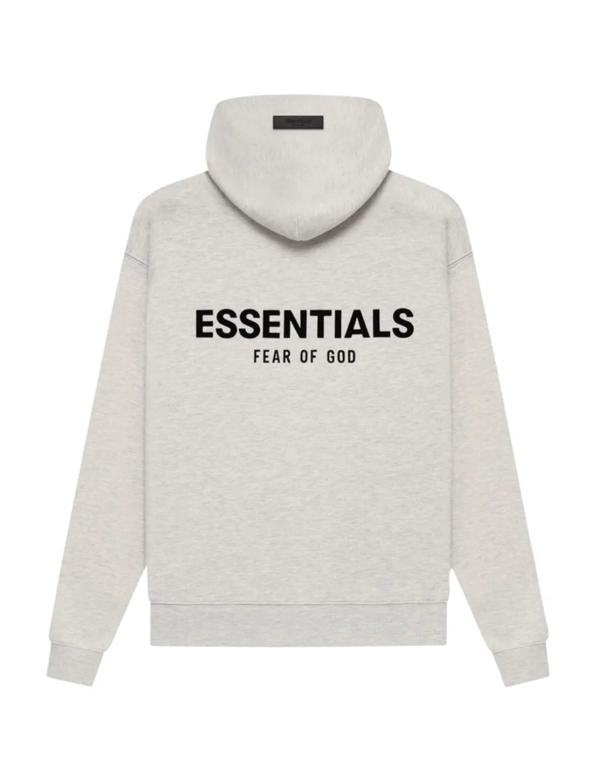 Sudadera con capucha de corte relajado, confeccionada en mezcla de algodón y elastano para mayor comodidad. Presenta el logotipo “ESSENTIALS FEAR OF GOD” impreso en la espalda. Color Light Oatmeal, ideal para un estilo casual y minimalista.